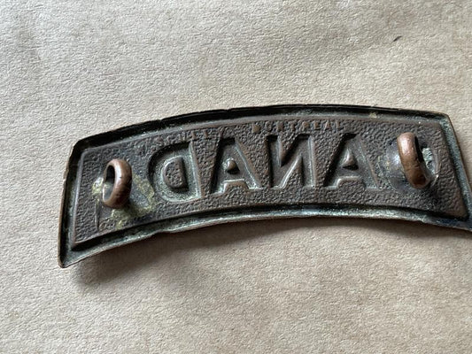 WW1 CANADA brass title stamped CARON BROS MONTREAL 1916.
