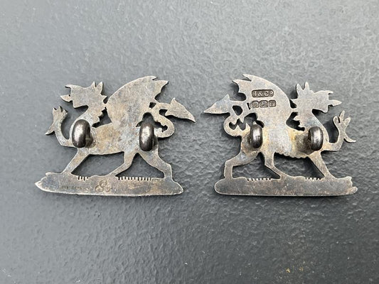 Officers 1923 Hallmarked silver The Buffs collar badges.
