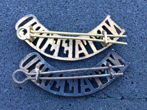 WW2 Indian Engineers (I.E) brass shoulder titles
