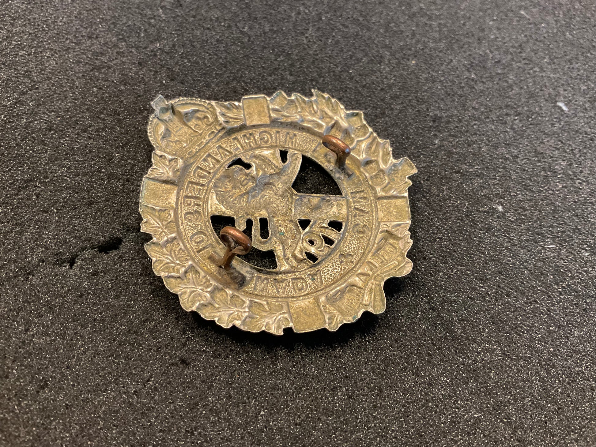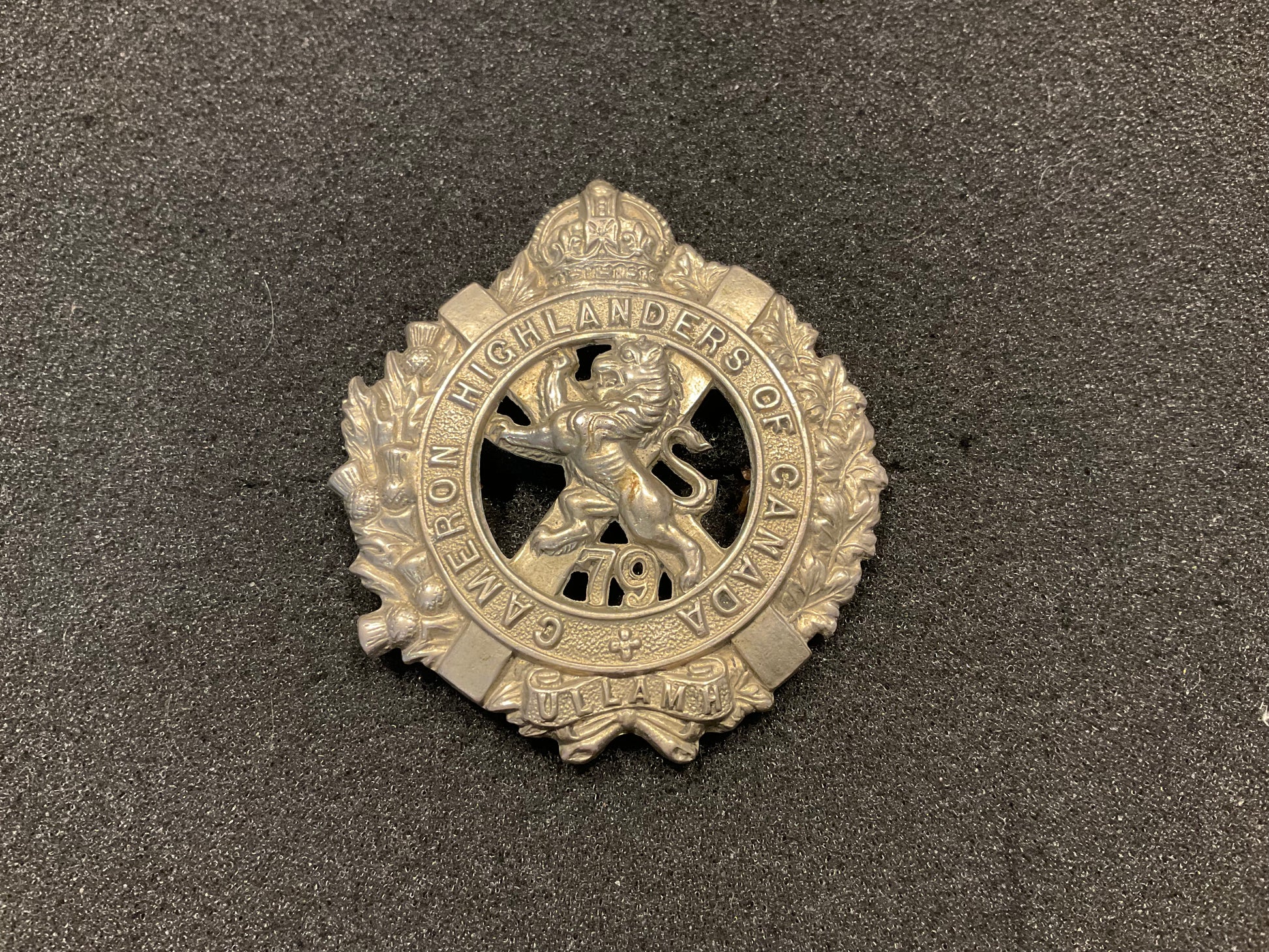 79th Cameron Highlanders of Canada glengarry white metal badge in great condition.