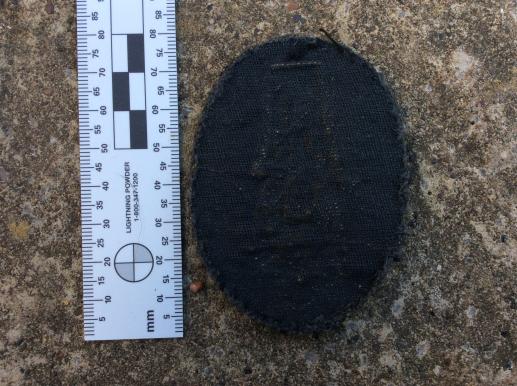 Large gold bullion on black wool badge, removed from uniform in excellent condition