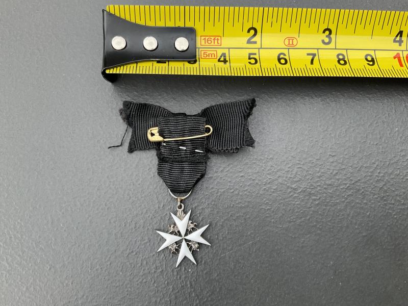 Miniature mounted for wear Order of St John medal nice early example that appears to be silver and white enamel.