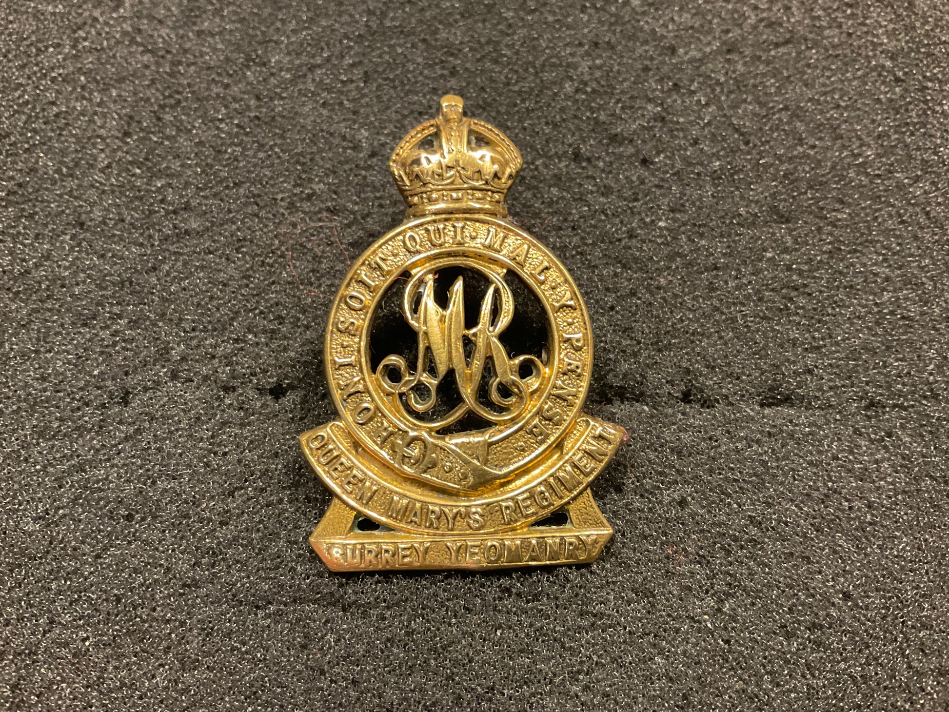 Queen Marys Regiment Surrey Yeomanry brass cap badge