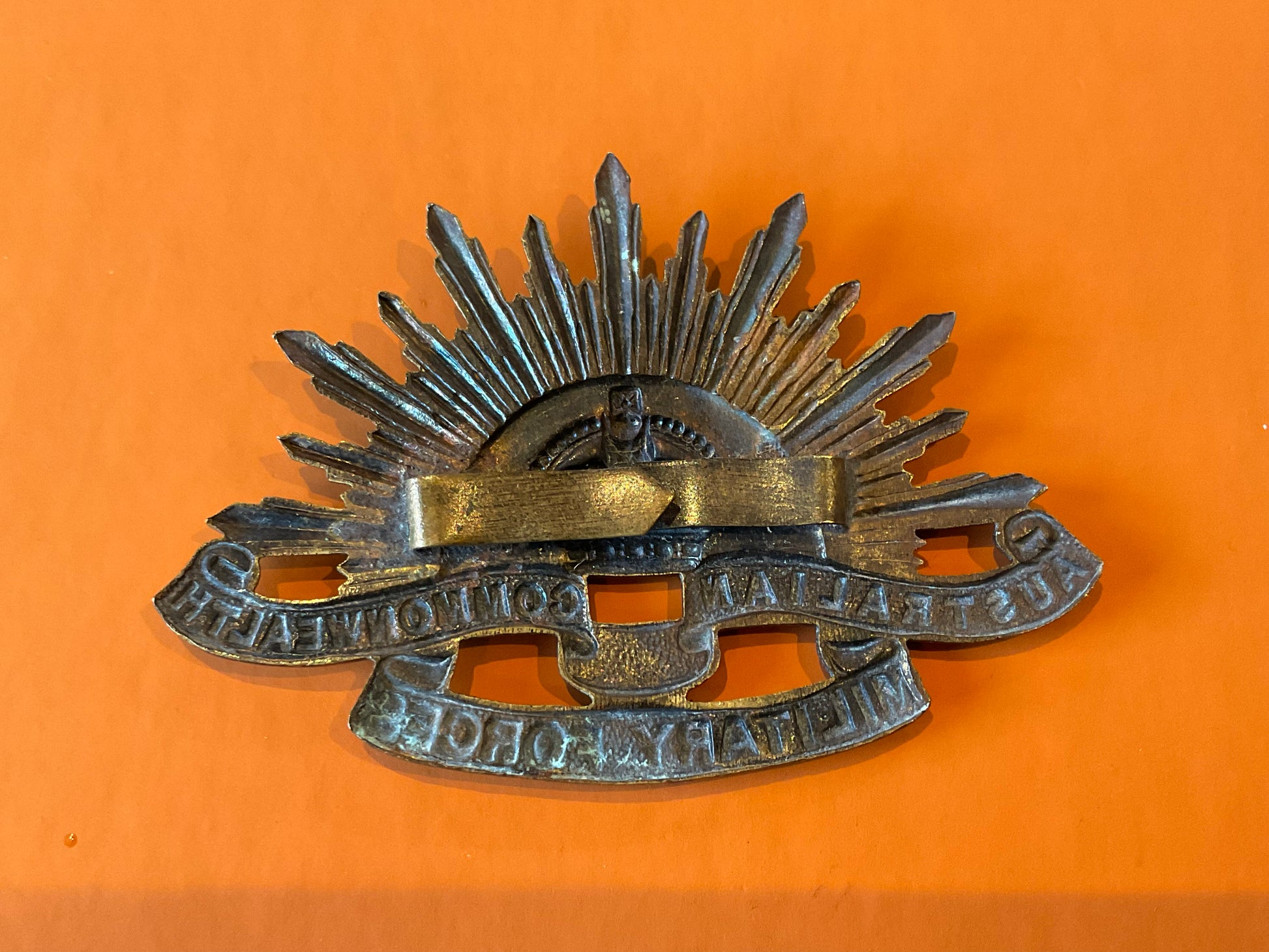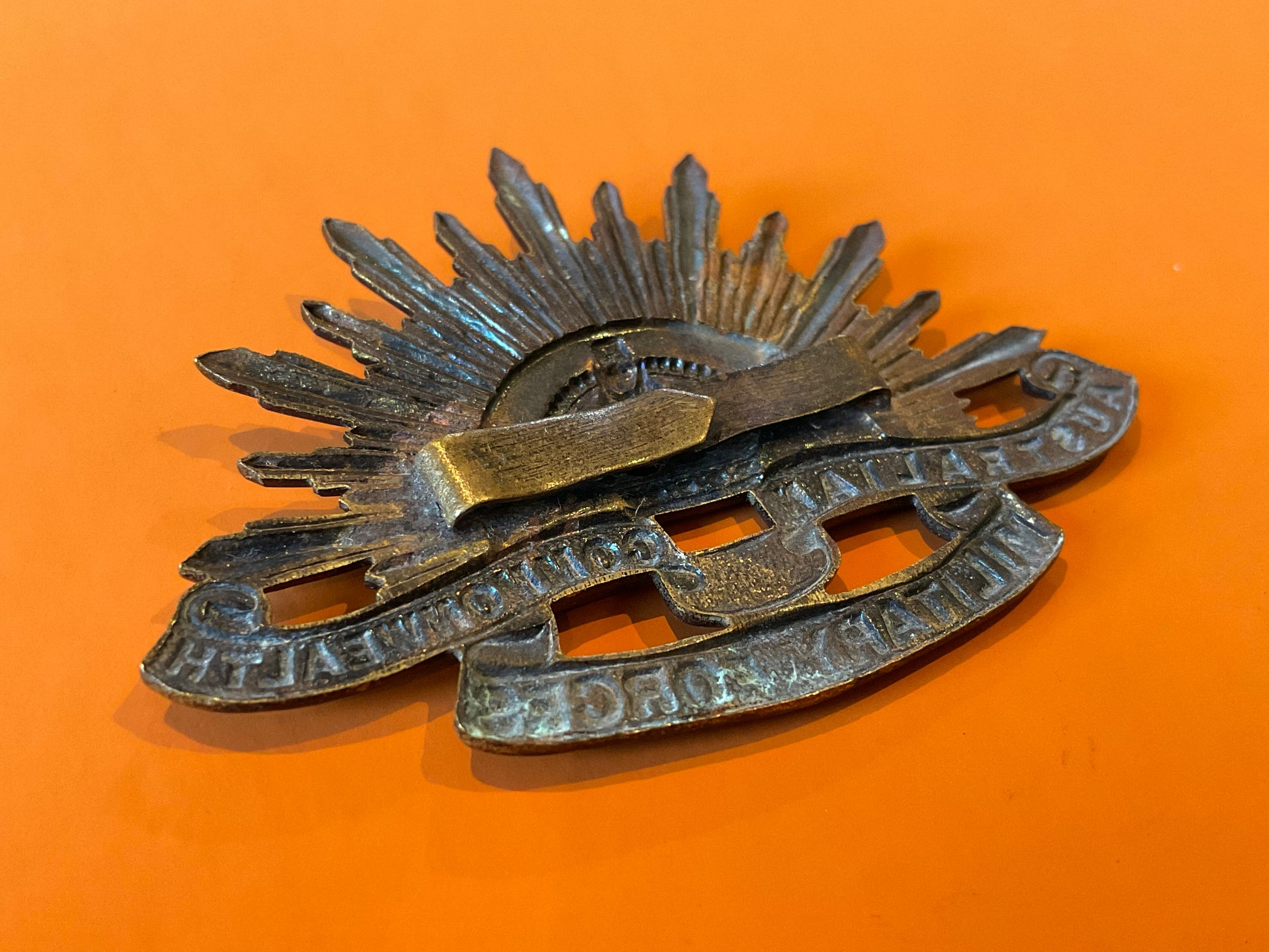 Rare WW1 Australian Rising Sun hat badge with rear blade fixings