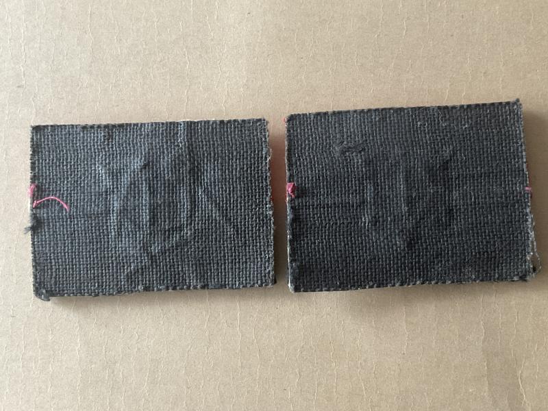 War Office Department bullion formation signs, matching facing pair removed from uniform.