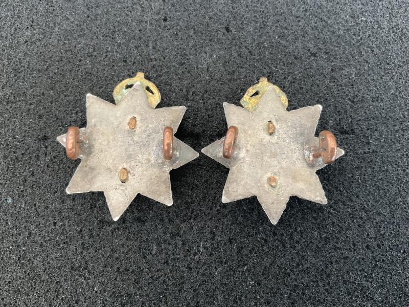 Matching pair officers collar badges, bi-metal (probably unmarked silver)
