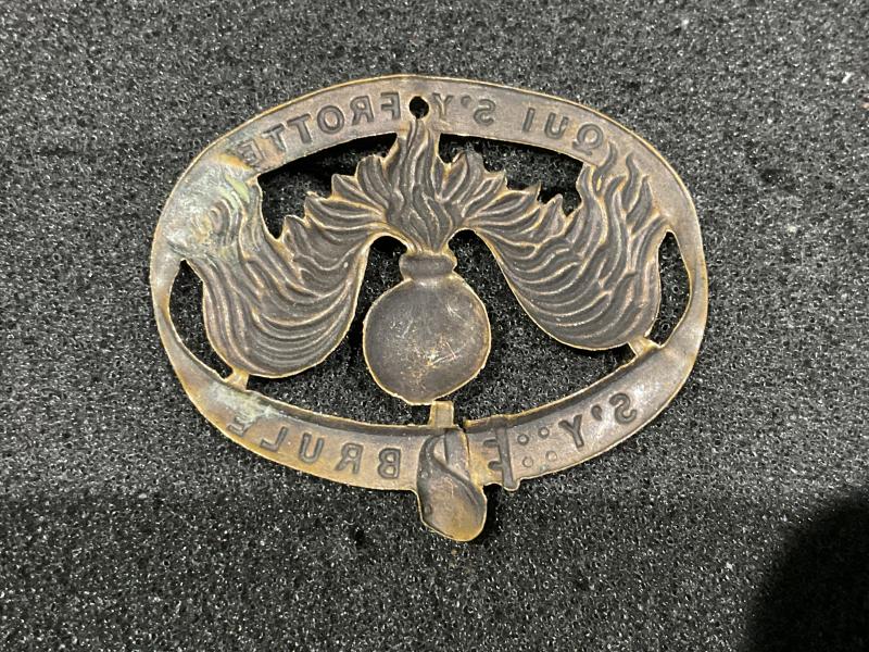 Very thin stamped brass first issue sleeve badge, as award by the French 3rd Infantry Division to the 9th Tank Corps for its brave support following the Battle of Moreuil ,not to be confused with the British made thick brass version with rear loop fixings. This badge has obviously been issued and worn due to its service wear.