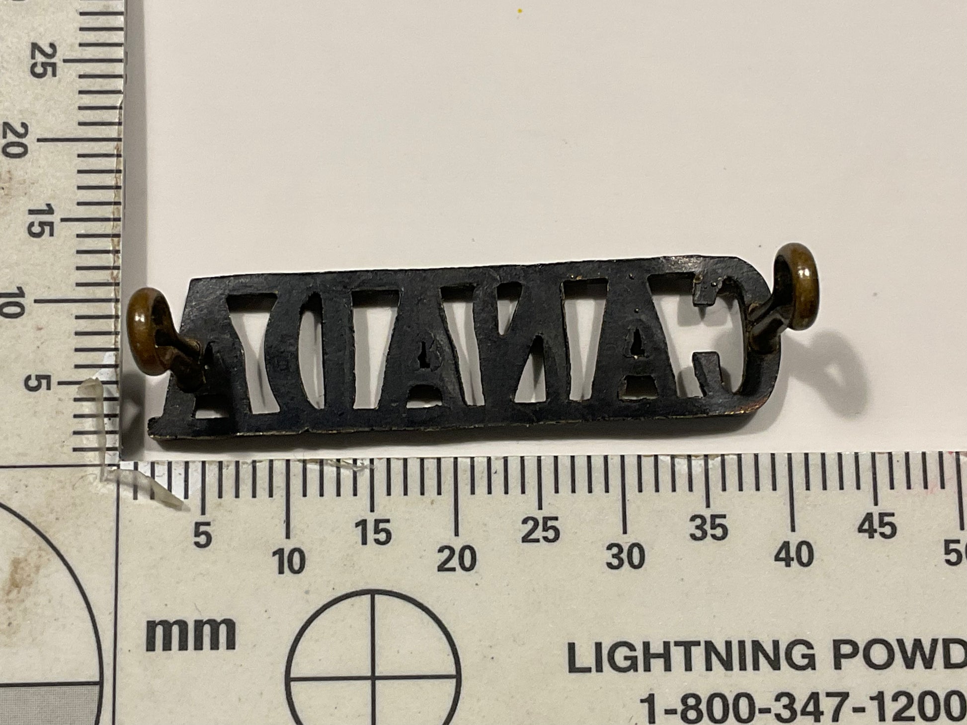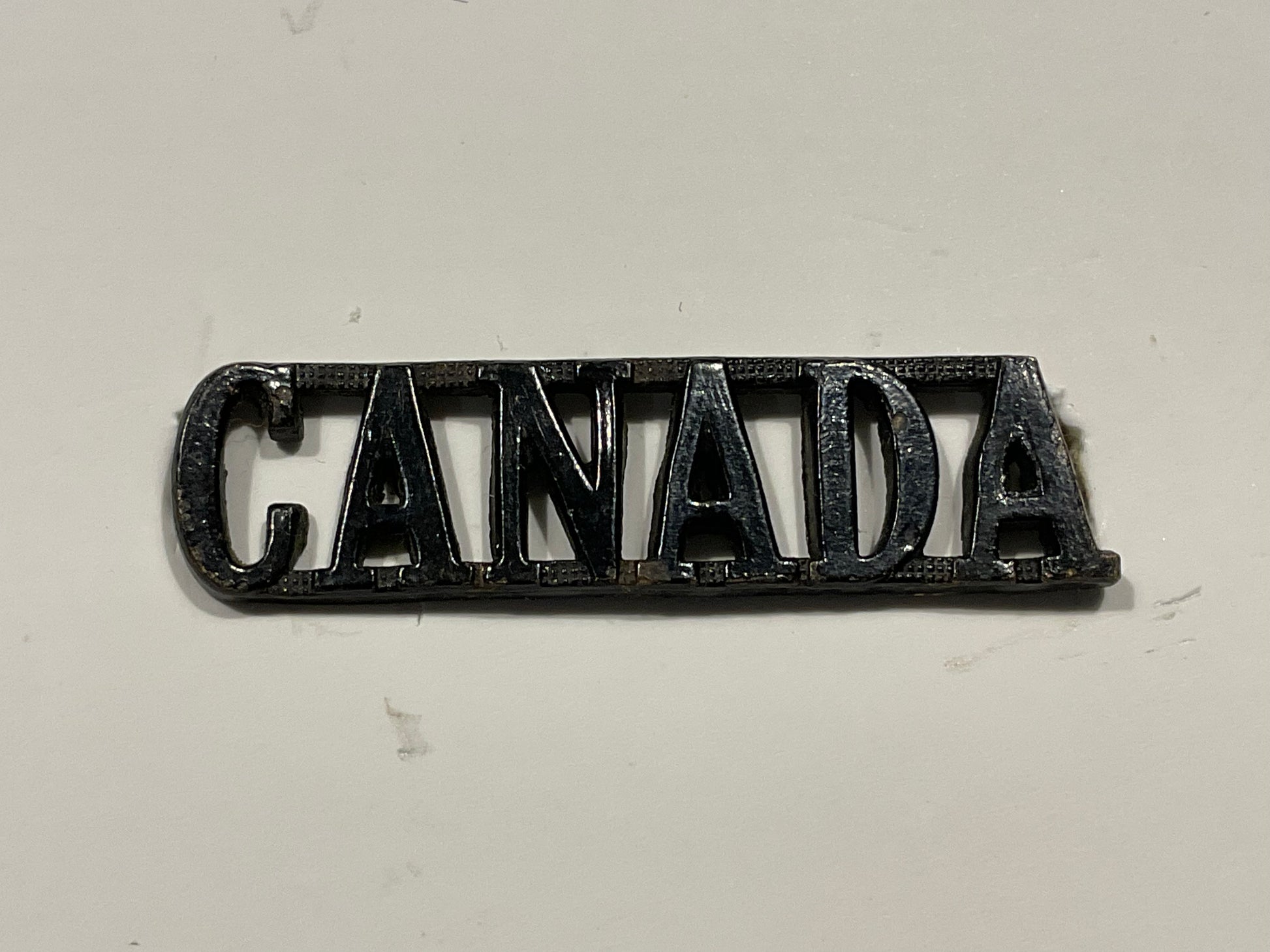 WW1 CEF small blackened brass ‘CANADA’ shoulder title