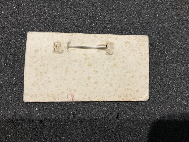 Miniature medal ribbon bar with brooch fixing, still mounted on original stores card