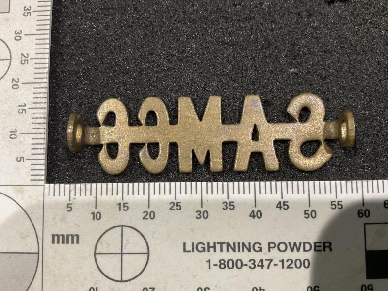 Classic WW1 sheet brass stamped S.A.M.C.C shoulder title in great condition