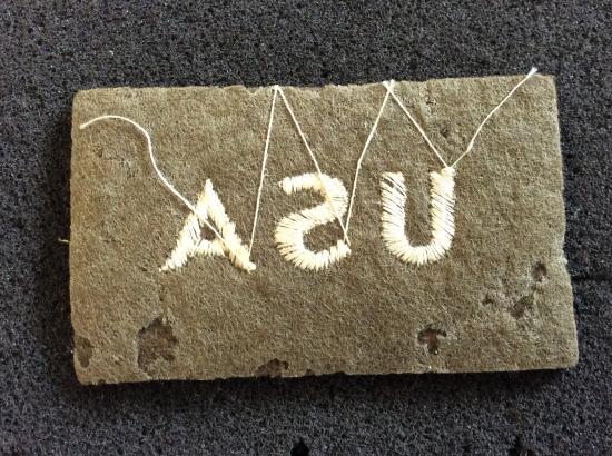USA title as worn by American Nationals serving in British Military Forces. Early paste back badge